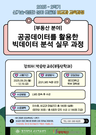 2025학년도 2학기 신기술·(첨단) 산업 분야 모듈형 비교과 교육과정 - 공공데이터를 활용한 빅데이터 분석…