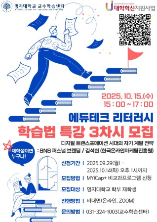 2025학년도 2학기 에듀테크 리터러시 [학습법 특강(3차)] 비교과 프로그램 신청 안내