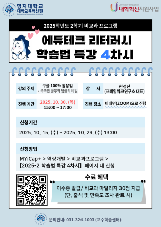 2025학년도 2학기 에듀테크 리터러시 [학습법 특강(4차)] 비교과 프로그램 신청 안내