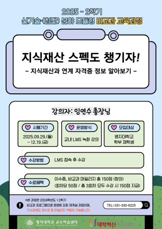 2025학년도 2학기 신기술·(첨단) 산업 분야 모듈형 비교과 교육과정 - 지식재산과 연계 자격증 정보 알아…